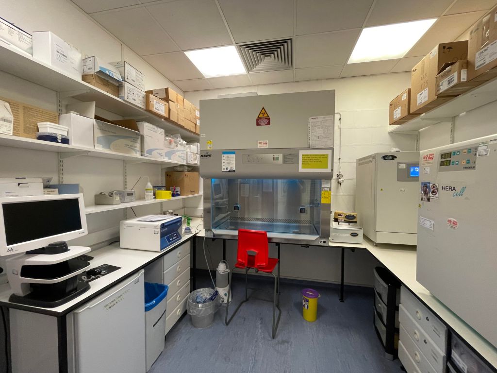 The cell culture room allows the culture of a range of tissues and cell types. The suite is equipped with a class II microbiological hood, CO2 incubators, centrifuge and a microscope.